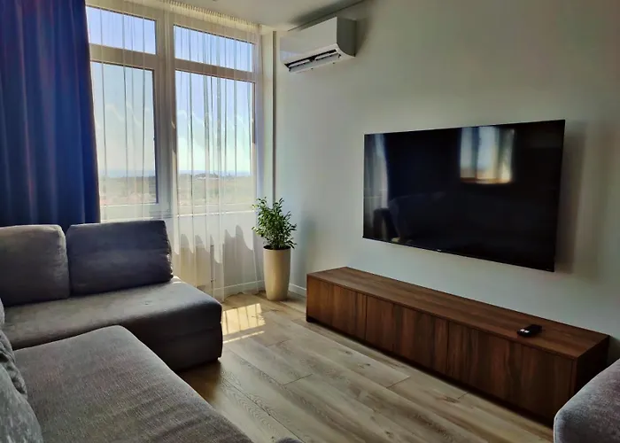 Overlooking the sea, the 50 m² Жемчужина Apartment Odesa is nearly a 25-minute walk from the Museum of Heroic Defense of Odesa in Odesa. This apartment features Wi-Fi and private car parking on site.